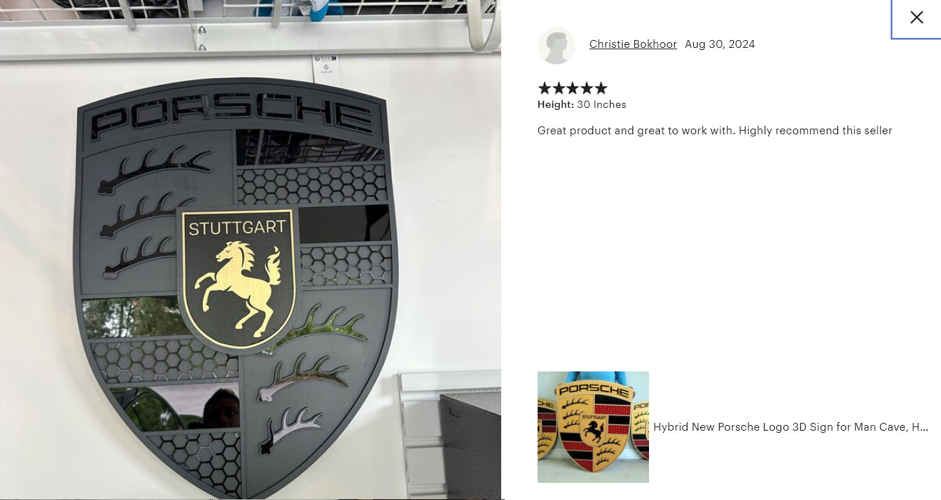 1000s of satisfied clients who love their unique Porsche 3D logo crest signs.
